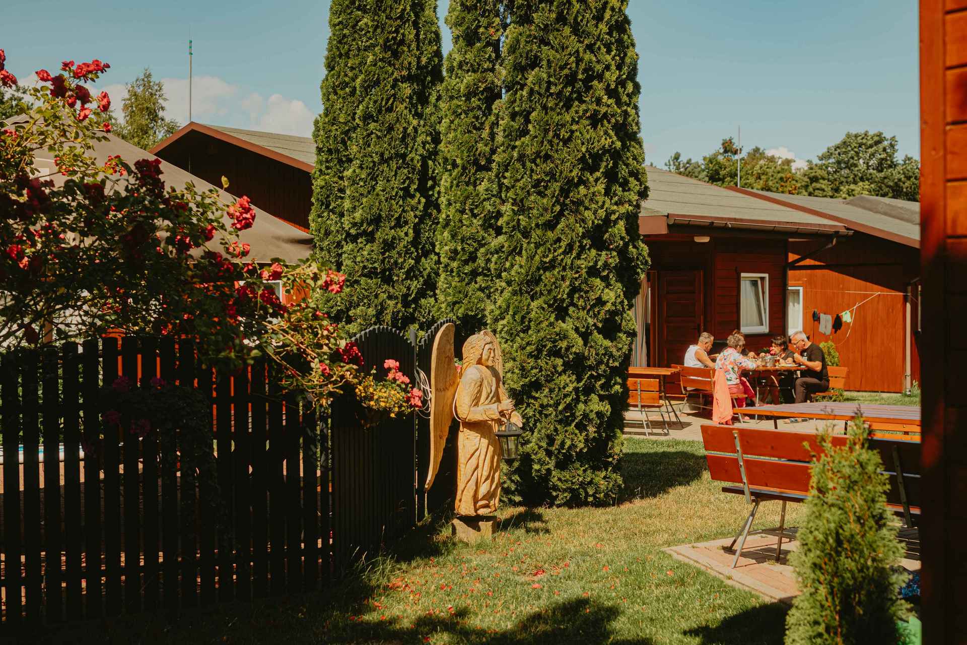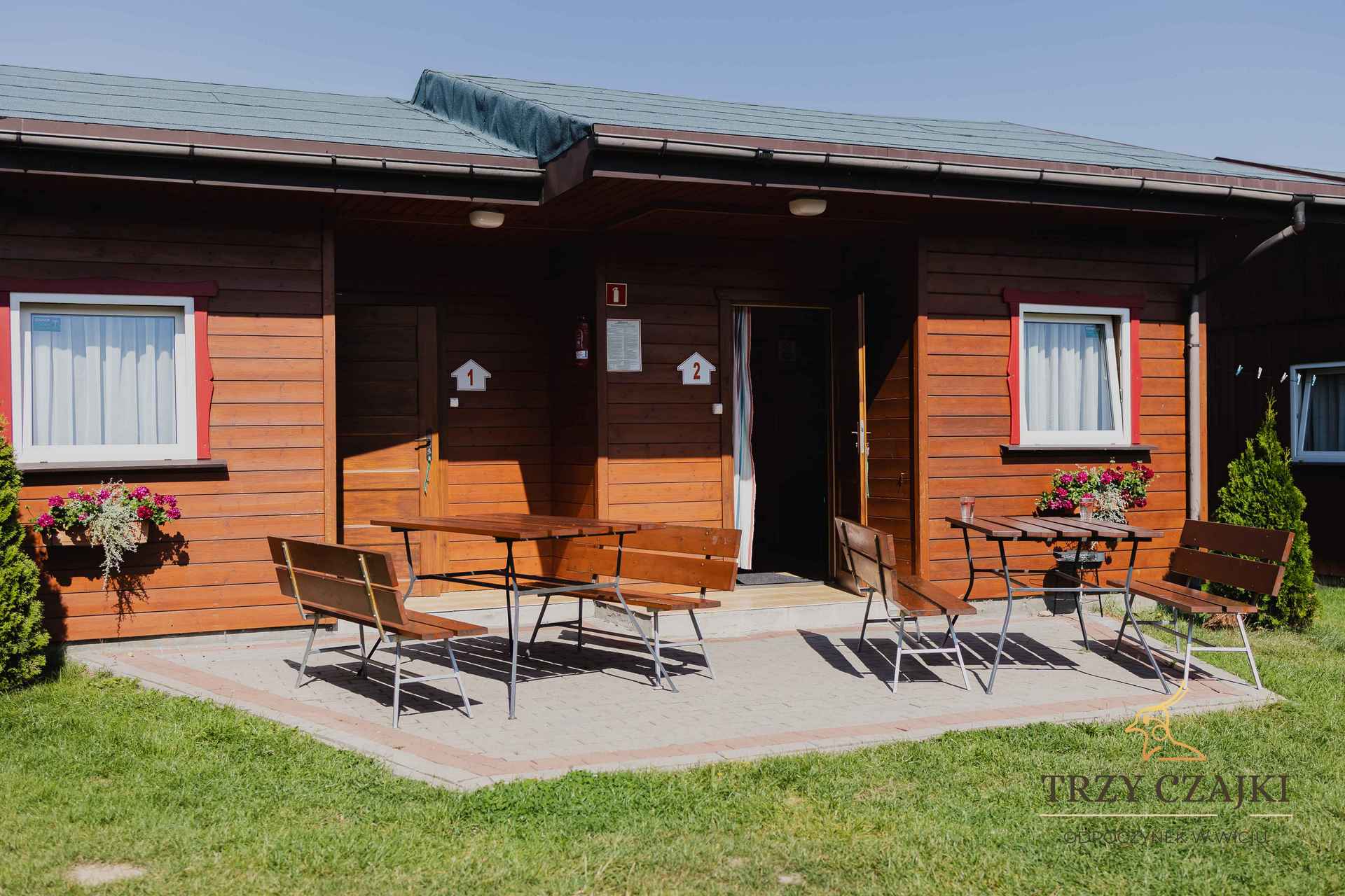 Każdy domek wyposażony jest w aneks kuchenny w pełni wyposażony i własną łazienkę z prysznicem. W środku znajdziecie rozkładaną kanapę w salonie z kuchnią, w osobnym pokoju łóżko małżeńskie. Zapewniamy wam czystą pościel podczas waszego pobytu. Nie dysponujemy ręcznikami ani kosmetykami. Na wietrzne ale słoneczne dni, możecie skorzystać z parawanu, który jest we wszystkich domkach. Zapewniamy bezpłatny dostęp do WI FI. Dobra wiadomość dla wszystkich miłośników leżakowania - mamy do dyspozycji leżaki.