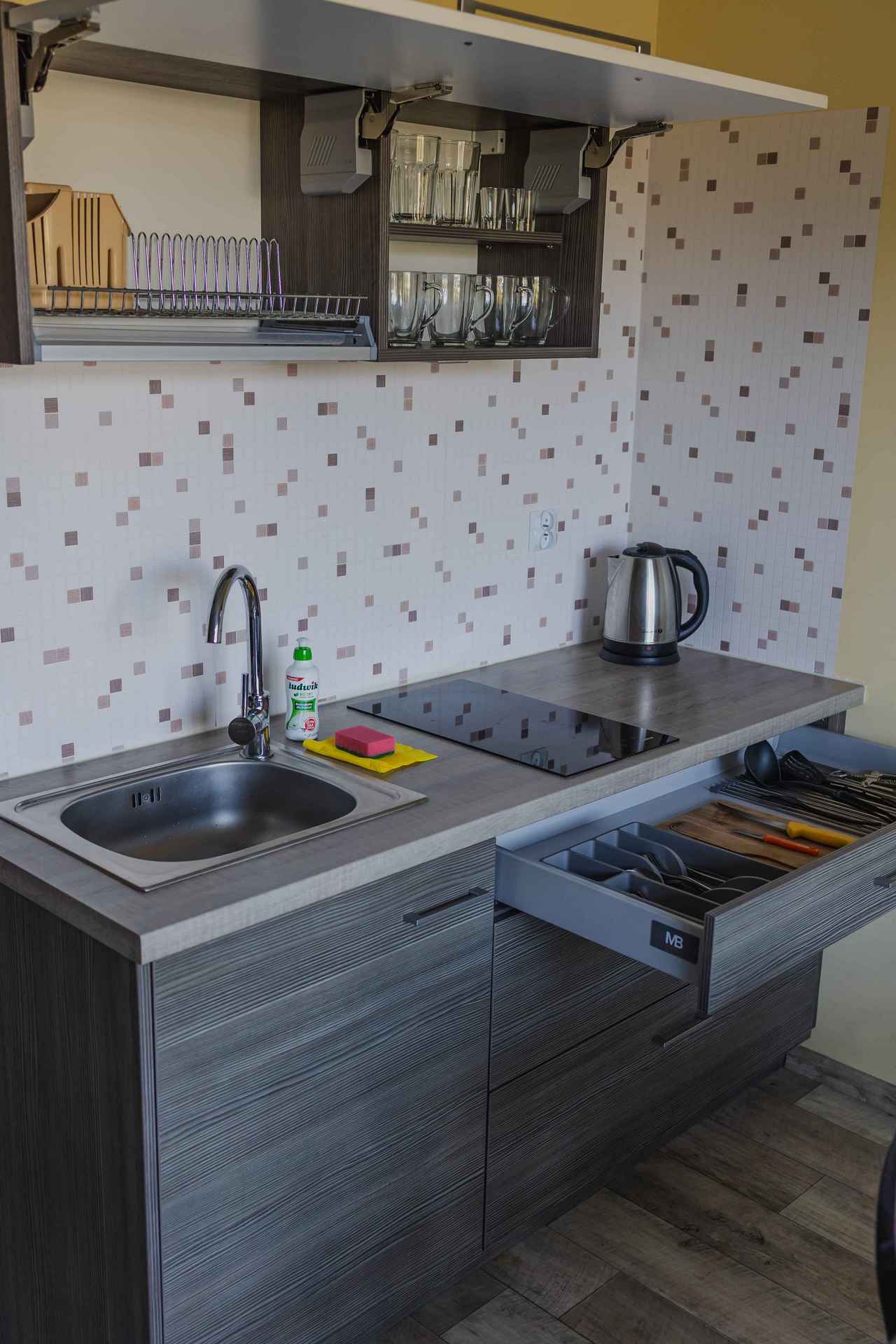 Każdy apartament wyposażony jest w aneks kuchenny w pełni wyposażony i własną łazienkę z prysznicem. W środku znajdziecie rozkładaną kanapę w salonie...