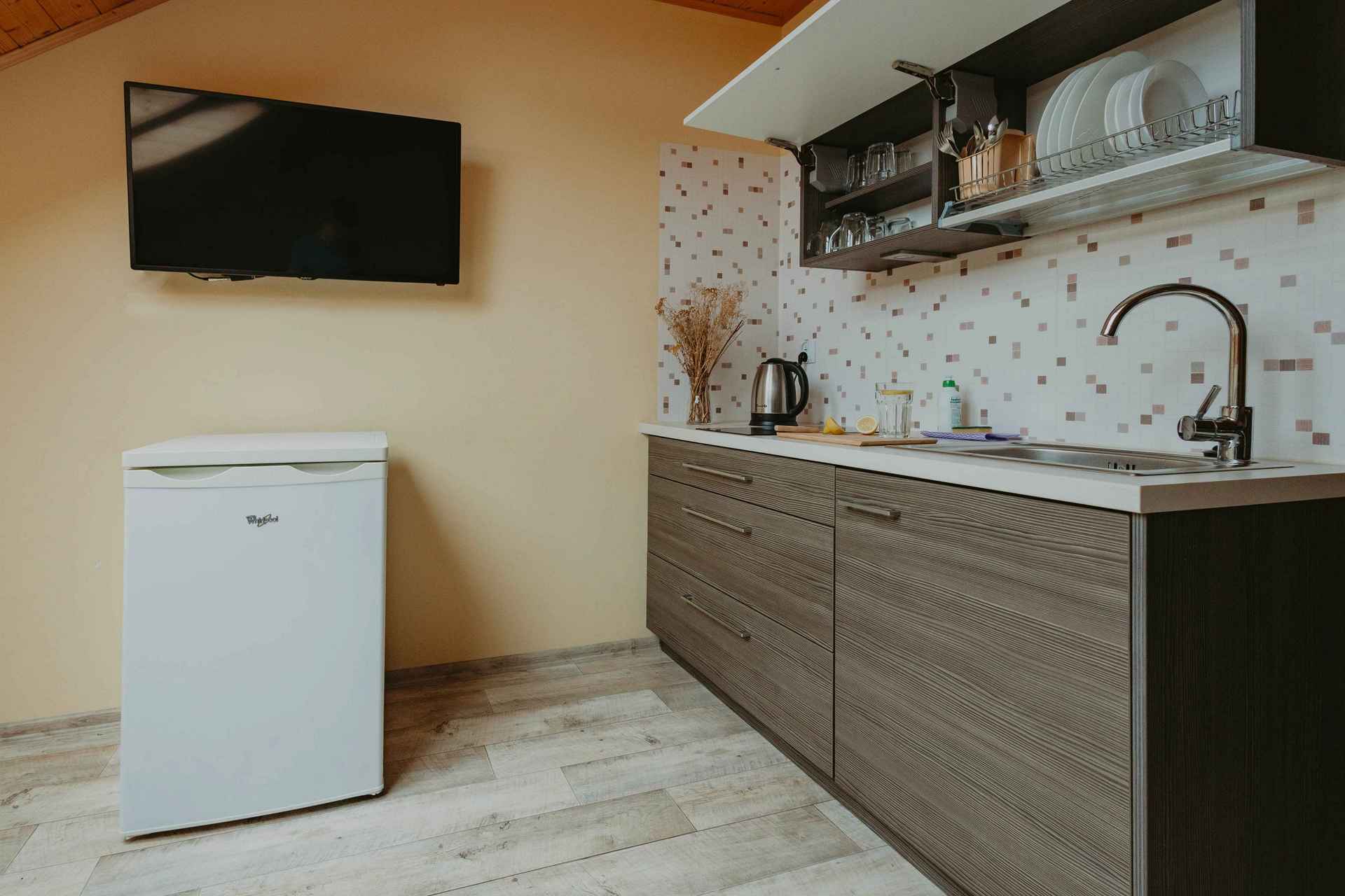 Każdy apartament wyposażony jest w aneks kuchenny w pełni wyposażony i własną łazienkę z prysznicem. W środku znajdziecie rozkładaną kanapę w salonie...