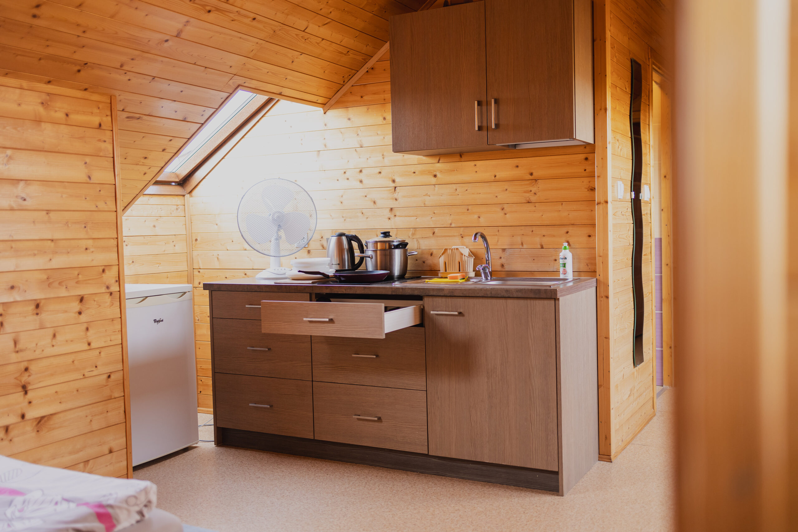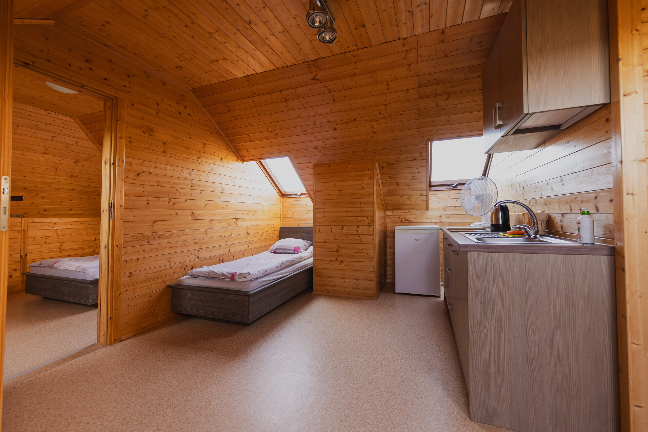 Apartament 4 osobowy na poddaszu (III piętro) z osobną sypialnią - najwyżej położony apartament w pensjonacie. Całe wnętrze wykończone drewnem, ze skosami i oknami dachowymi, które wpuszczają mnóstwo naturalnego światła. Ciepły, kameralny klimat, idealny na rodzinne wakacje. W sypialni: łózko podwójne + łóżko pojedyncze. W salonie: łóżko pojedyncze, stół z krzesłami, aneks kuchenny w pełni wyposażony z lodówką, telewizor i darmowe wi-fi. prywatna łazienka z prysznicem. W cenie pobytu: pościel, ręczniki, parking, sauna, grill, leżaki i parawan na plażę, animacje dla dzieci, plac zabaw, media, woda i sprzątanie. Zero ukrytych dopłat.